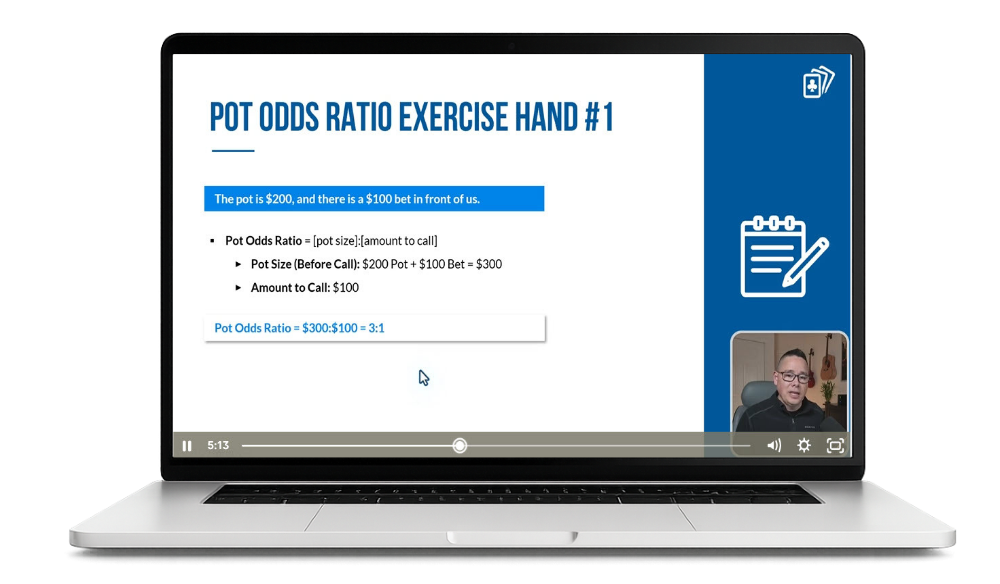"Topics such as Pot Odds, Hand Equity, and EV were clearly defined with easy to understand examples. The lectures averaged about 10 minutes which made it easy to plan and study." – Aaron